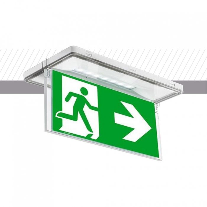 Версию без флага можно использовать для освещения в аварийном случае, а версию с флагом можно использовать для указания путей эвакуации. Установочные аксессуары позволяют установить его на любой тип потолка.
